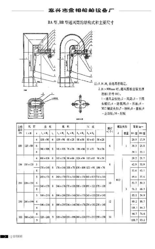 BA 型 BB型通风筒的结构型式和主要尺寸